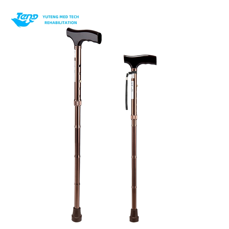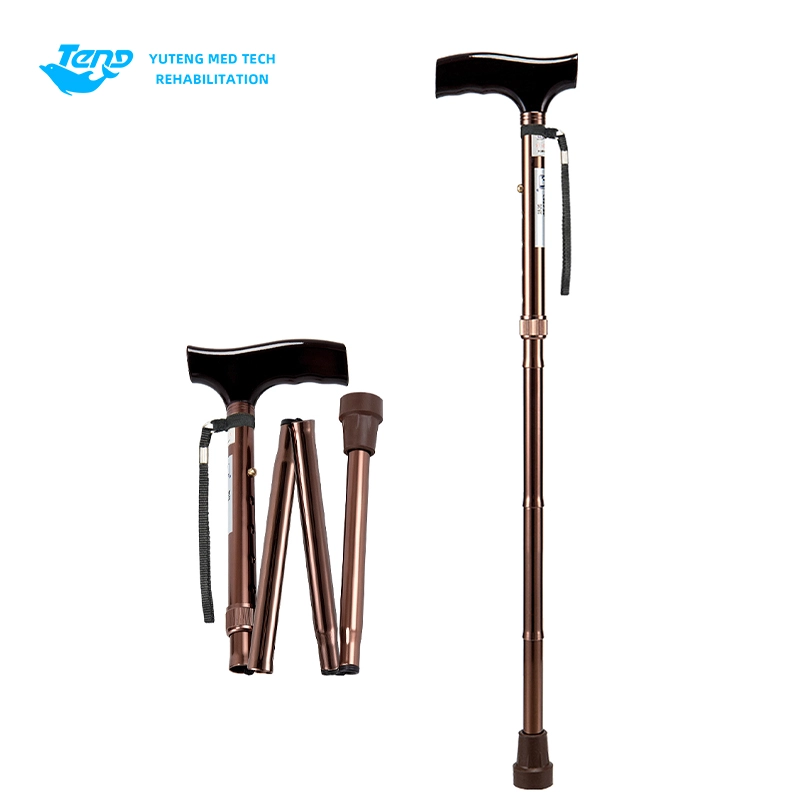 Yuteng Medical products Folding Crutch, is the elderly folding crutch, aluminum alloy crutch products. Pipe: The diameter of 22*1.2 thick, lower limb 19*1.2 aluminum alloy pipe, can be folded four fold, surface oxidized copper, 5 holes adjustable.